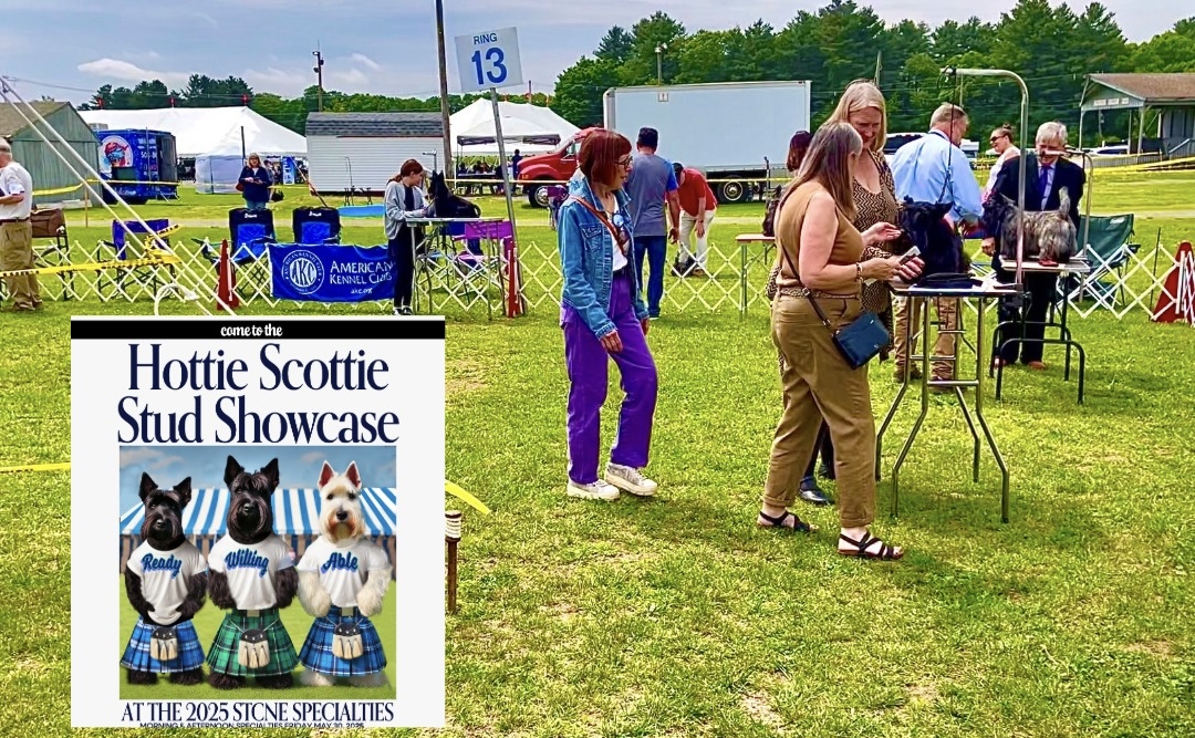 The second ever Hottie Scottie Stud Showcase will be held at the afternoon STCNE Specialty Show to be held Friday, May 29,2026 at Crackerbarrel Fairgrounds, Wrentham Developmental Center, 54 Emerald St. Wrentham, MA 02093.These Specialty shows are dog shows for Scottish Terriers only, and the afternoon show begins after 1:15 p.m.